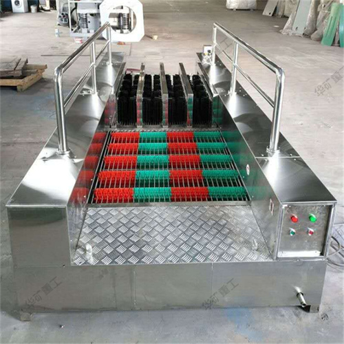 礦用洗靴機是井下人員升井后通過洗靴機時,洗靴機全智能控水、電、動力系統(tǒng)的運行,可以一次性洗凈靴子底紋和靴面靴筒上的煤泥,保持靴子表面的清潔。礦用洗靴機是主要由洗靴系統(tǒng)、支撐部件、傳動系統(tǒng)、電控系統(tǒng)、連接部件、人體行走扶手等構(gòu)成,安置在井口或副井井口洗靴池處。升井人員走至洗靴機時,人體紅外線傳感器便會指令自動打開傳動系統(tǒng)和噴淋系統(tǒng),礦工行走或任意停留在刷洗靴機中間,就可自動把膠靴底、靴面、靴幫、靴尖、靴跟刷得干干凈凈,徹底解決了員工升井后還要用手刷靴,費時費力還刷不干凈的問題,減輕了員工勞動強度,保持了井口衛(wèi)生,減輕了粉塵污染,又能節(jié)約用水,是礦井標準化建設(shè)的可靠產(chǎn)品。