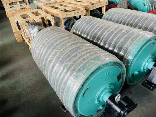 傳動(dòng)滾筒是帶式輸送機(jī)傳遞動(dòng)力的主要部件,其驅(qū)動(dòng)帶式輸送機(jī)的方式有單滾筒、雙滾筒及多滾筒之分。單滾筒多用于功率不太大的輸送機(jī)上,如煤礦地面運(yùn)輸及選煤廠(chǎng)等處。井下帶式輸送機(jī)一般均采用雙滾筒,以使輸送機(jī)結(jié)構(gòu)緊湊