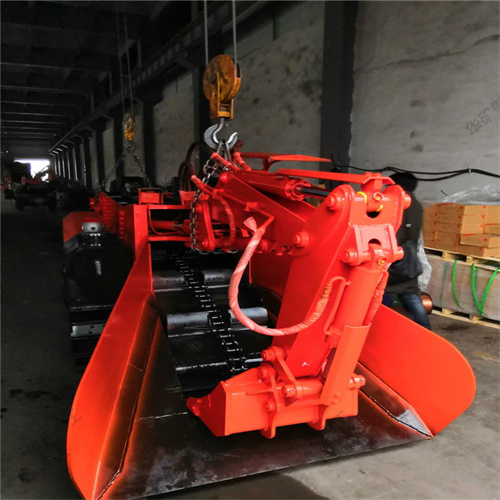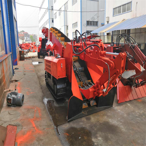 礦用挖掘式裝載機又稱扒渣機,坑道清理機,坑道出渣機。按照行走方式分為輪式和履帶式。集液壓行走,挖掘裝置,皮帶輸送,裝車,清理巷道底部五種功能于一身。主要由電動機,液壓行走,挖掘裝置,行走裝置,皮帶輸送卸料和電器控制系統(tǒng)等部分組成。整車液壓系統(tǒng)由一臺15kw電動機為動力帶動齒輪泵,液壓油經(jīng)油箱到多路閥到執(zhí)行動作元件再回到油箱,通過多路閥的四個手柄完成對液壓裝置的控制。它突出的優(yōu)點就是操作靈活,出渣效率高,以:2m*2m巷道為例,一排炮在一小時左右就可以清理干凈。
