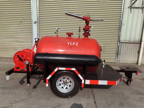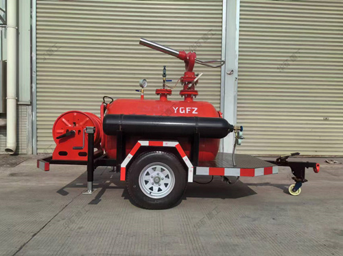 移動干粉滅火裝置,以高壓氮氣為動力,將儲罐內(nèi)干粉滅火劑通過干粉炮或干粉槍噴向保護(hù)對象,由于干粉的比重較大,在氣流的作用下能覆蓋到火上不致被氣流沖散。干粉在火焰的作用下破壞了原有的結(jié)晶,以新的化學(xué)物質(zhì)中斷了燃燒的鏈?zhǔn)椒磻?yīng),窒息火焰,同時干粉在分解過程中大量吸熱,使著火區(qū)域溫度迅速下降,從而控制撲滅火災(zāi)。