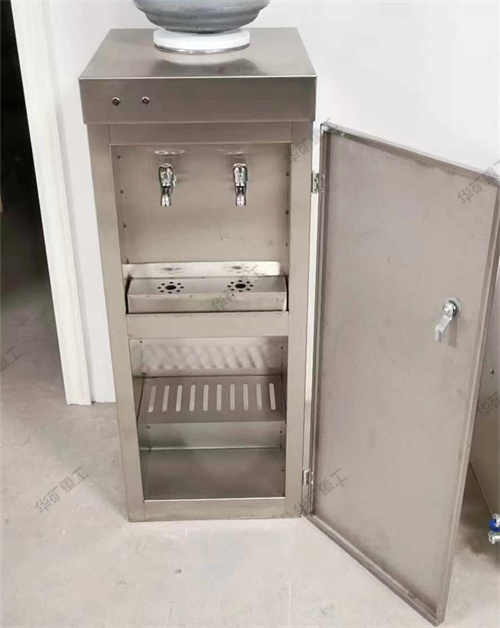 礦用防爆飲水機(jī)為礦用隔爆兼本安型,防爆標(biāo)志為Exd[ib]I。使用在有甲烷氣體混合物和煤塵爆炸危險(xiǎn)的煤礦井下??赏瑫r(shí)提供85℃的熱水和常溫水,可供井下工作人員飲用熱水。本加熱器能自動(dòng)控溫,采用內(nèi)置不銹鋼電加熱管加熱,具有壽命長(zhǎng)熱效高,升溫快,噪聲低,具有安全隔爆,省電等特點(diǎn)。