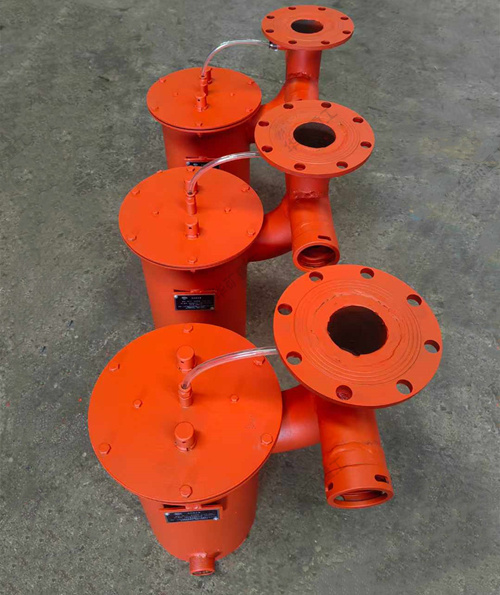 負壓自動放水器主要由通大氣閥、負壓平衡管、托盤、側(cè)導(dǎo)向桿、磁鐵、中心導(dǎo)向桿、外筒、放水閥保護罩、放水閥、導(dǎo)向座、浮漂、進水閥等組成。是一種瓦斯抽采系統(tǒng)的自動放水器。它使得井下瓦斯抽采管路由原來的人工放水改為全自動無電源放水,并可以在井下安裝操作,既方便又省事。