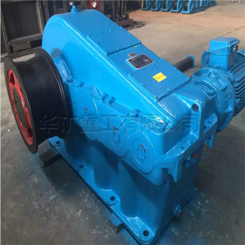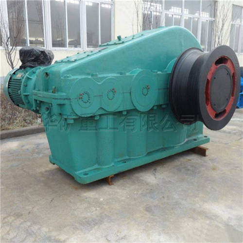 調(diào)車絞車適用于煤礦、選煤廠、電廠、冶金礦場、鋼鐵廠、水泥廠、港口等場所調(diào)度列車之用。該絞車為無機(jī)繩摩擦式傳動(dòng),與導(dǎo)向輪、托滾、壓滾、滑車等輔機(jī)配套組成列車系統(tǒng)。調(diào)車絞車系統(tǒng)可以實(shí)現(xiàn)正反雙向重載牽車。絞車由電動(dòng)機(jī)、聯(lián)軸器、制動(dòng)器、減速器以及摩擦輪等幾部件分組成。電機(jī)采用變頻電機(jī),配以變頻電控柜,可以實(shí)現(xiàn)無機(jī)變速,重載時(shí)采用低速恒扭矩啟動(dòng)、頻率在5~50H范圍內(nèi)可調(diào),空載時(shí)采用高速恒功率運(yùn)行、使絞車運(yùn)行速度快、效率高、頻率在50~80Hz范圍內(nèi)可調(diào)。減速器采用雙圓弧齒輪傳動(dòng),具有傳動(dòng)比大、體積小、傳動(dòng)效率高、噪音低、承載能力強(qiáng)等優(yōu)點(diǎn)。電機(jī)與減速器之間采用帶制動(dòng)輪的聯(lián)軸器,制動(dòng)器為手動(dòng)、自動(dòng)2用,使制動(dòng)更安全可靠。摩擦輪采用高牌號鑄鋼件,機(jī)械強(qiáng)度高、耐磨性能好、使用壽命長。摩擦輪與減速器輸出軸采用脹套聯(lián)系,安裝拆卸方便。絞車主機(jī)用鋼絲繩與輔機(jī)連成牽車系統(tǒng),輔機(jī)包括導(dǎo)向輪、壓滾、托輪、滑車、支持輪、重垂、重垂架等配件。鋼絲繩在主機(jī)摩擦輪上纏繞四圈后穿過導(dǎo)向輪、壓滾、滑車,兩頭固定。托滾放置在鋼絲繩下方起襯托作用,重垂通過支架輪將滑車張緊,使鋼絲繩始終有一定的張緊力,保證鋼絲繩在摸查輪上產(chǎn)生足夠大的摩擦力,以拉動(dòng)整列車火車。整個(gè)工作過程如下∶電機(jī)啟動(dòng)、驅(qū)動(dòng)減速器、使摩擦輪傳動(dòng),通過摩擦力使鋼絲繩運(yùn)動(dòng)。改變電機(jī)的轉(zhuǎn)動(dòng)方向?qū)⒏淖兞熊嚨倪\(yùn)動(dòng)方向,一達(dá)到調(diào)運(yùn)列車的需要調(diào)車絞車分為單摩擦輪調(diào)車絞車 雙摩擦輪調(diào)車絞車及四摩擦輪調(diào)車絞車又分為裸露摩擦輪和隱藏摩擦輪。就安全因素而言,隱藏式摩擦輪結(jié)構(gòu)更為安全