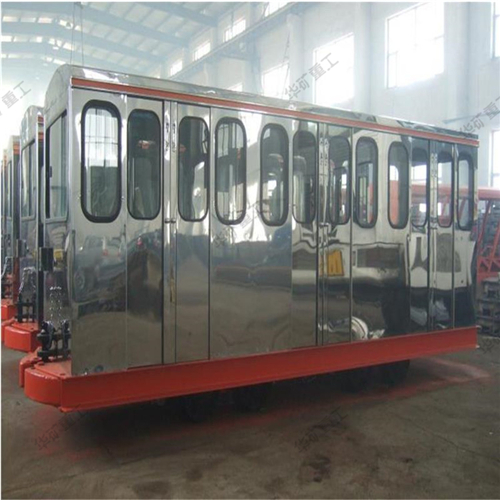 1、PRC平巷人車車箱有前后端板和金屬頂棚,車廂外部鋼板使用2mm厚的鋼板,內(nèi)部使用0.5mm厚的不銹鋼板做車棚,車身下部使用黃色瓷漆,上部使用藍(lán)色瓷漆。車身呈流線型,車棚采用厚方管做骨架。車廂底板采用花紋鋼板,底盤刷防銹漆。安裝高強(qiáng)度塑鋼車椅,每車12座。車體外部兩側(cè)需安裝指示燈(LED防爆型),每車不得少于6盞(一車一直流電源)。