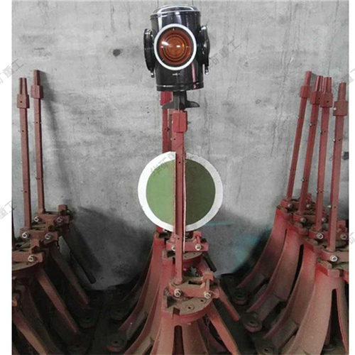 由扳道人員提起手柄在轉(zhuǎn)動標志的同時由其連接桿連動道岔一起改變方向;無柄道岔表示器,在扳道人員扳動道岔握柄時由其轉(zhuǎn)換設(shè)備改變道岔方向的同時,連接在道岔尖軌上的連接桿帶動道岔標志相應(yīng)地改變方向。
