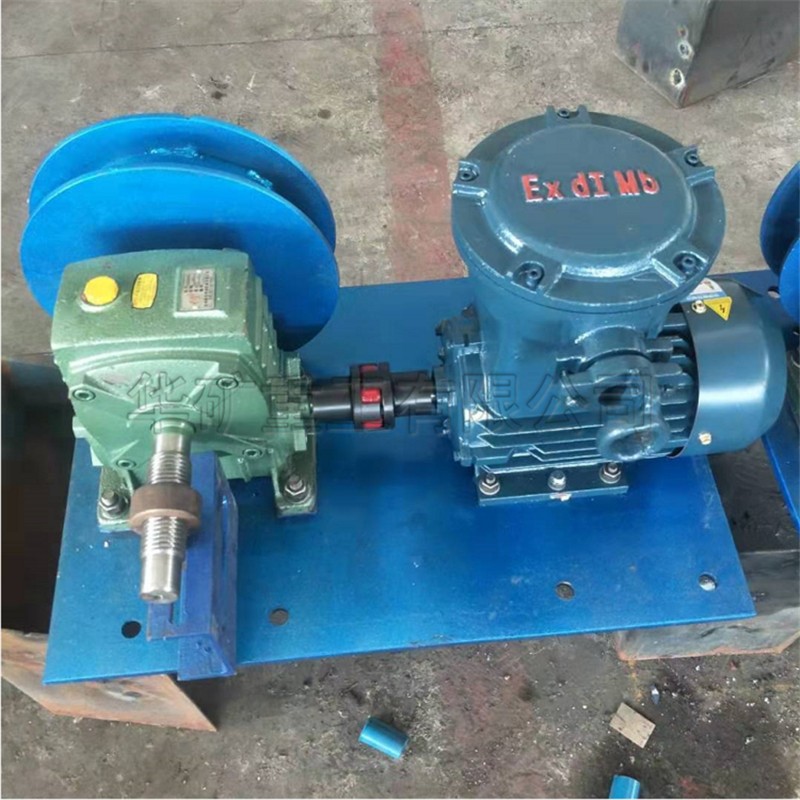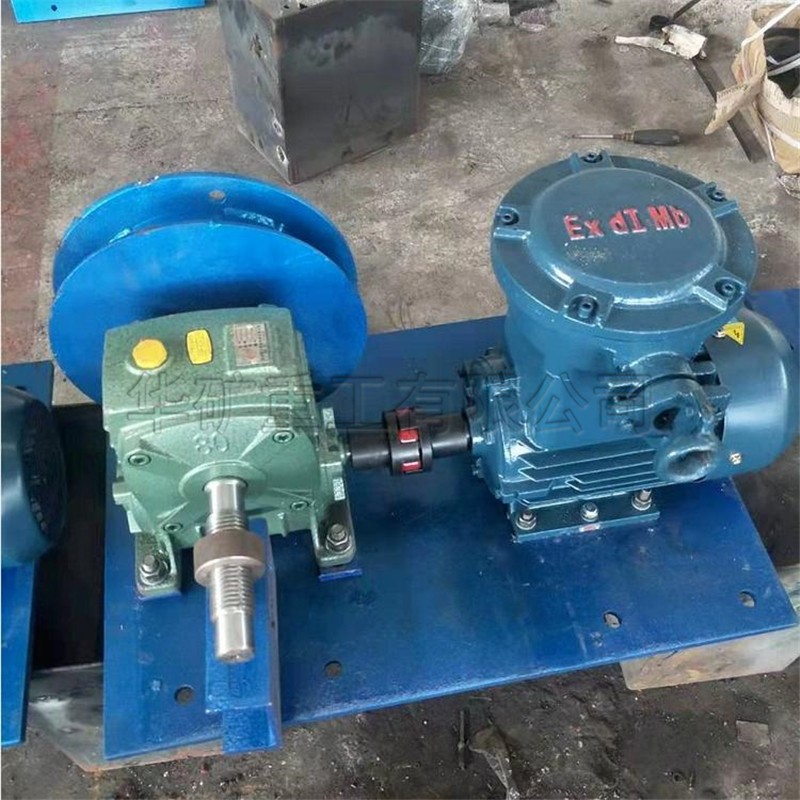 收放絞車包括:防爆電機(jī)、減速機(jī)、滾筒、提升鋼絲繩,由防爆電機(jī)通過減速機(jī)帶動(dòng)滾筒進(jìn)行正反轉(zhuǎn),經(jīng)提升鋼絲繩帶動(dòng)擋車欄提升、落網(wǎng)。