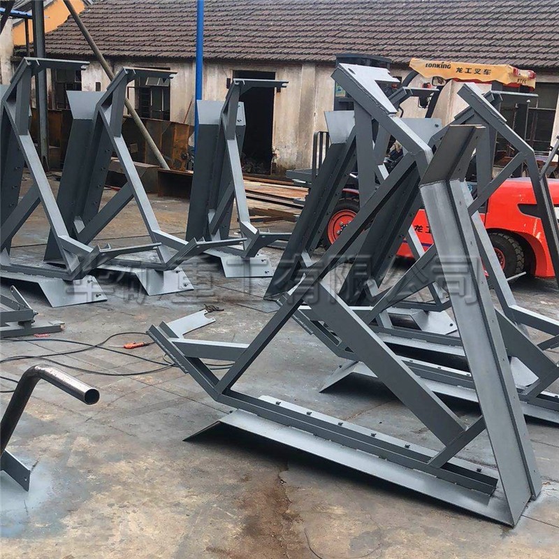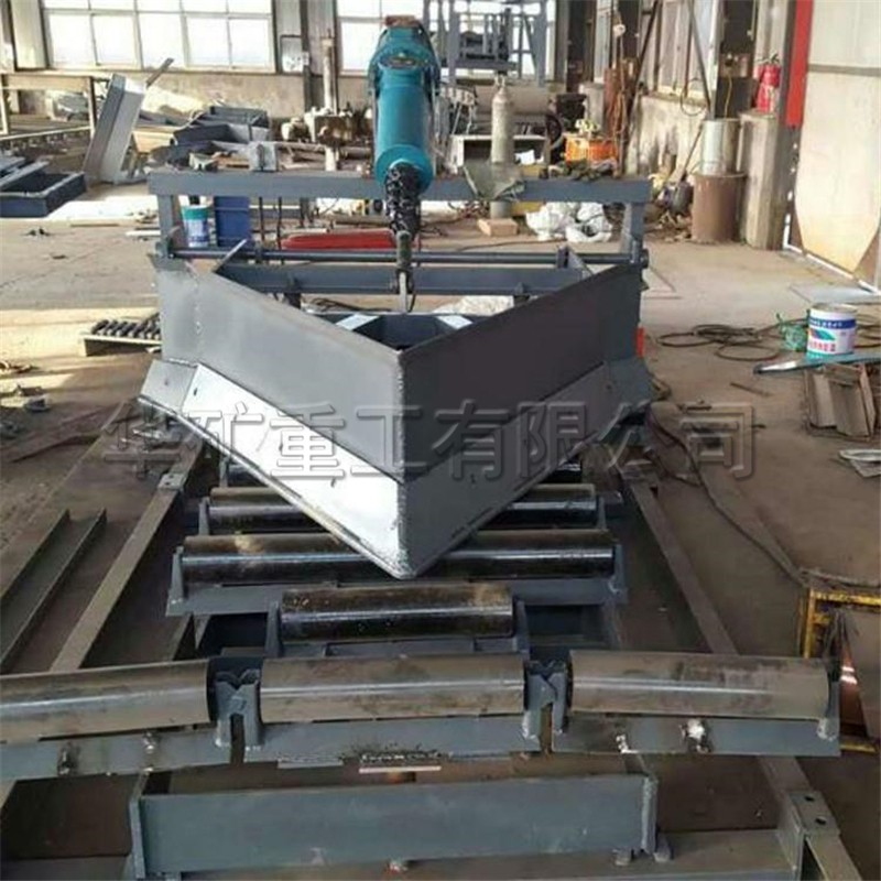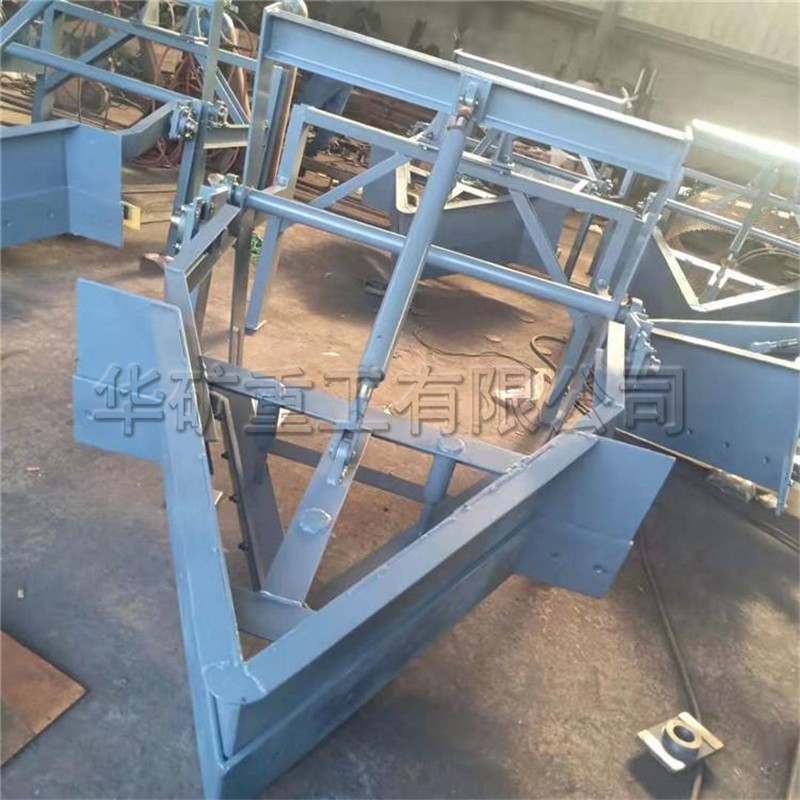 4.采用變形托輥組與電液推桿工作機(jī)械同步,推桿一個工作循環(huán),變形托輥組完成從槽形到平形再到槽形的自動變換。