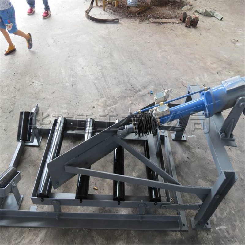 犁式卸料器是安裝在膠帶輸送機(jī)的中間架上,能將膠帶輸送的物料均勻、連續(xù)卸入料斗或需要場所的皮帶輸料輔機(jī)。本卸料器比老式卸料器增加了可變槽角、副犁刀等,并改用電液推桿動力源??朔死鲜叫读掀骼缌喜槐M、刮皮帶以及電動推桿過載能力差,常燒毀電機(jī),頂彎絲杠,機(jī)械易損壞等缺點(diǎn)。電液動犁式卸料器廣泛用于礦山、冶金、電場、煤場、集運(yùn)站、港口碼頭等輸送機(jī)的分段卸料。