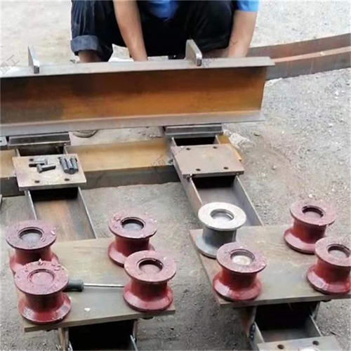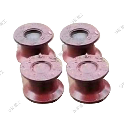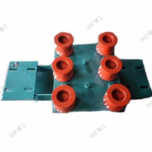 彎道繩輪組: 作用:適用于無極繩絞車巷道水平彎處,起到讓鋼絲繩轉向使梭車順利過彎的作用。根據巷道的曲率半徑,適當布置彎道繩輪組的數量。 結構及材質: 輪體采用45#鋼無縫管和65Mn鑄造兩種。軸承采用6206HRB ;架體采用10mm原平板 數控切割,安裝板模具沖壓而成,保證其尺寸準確,外形美觀。