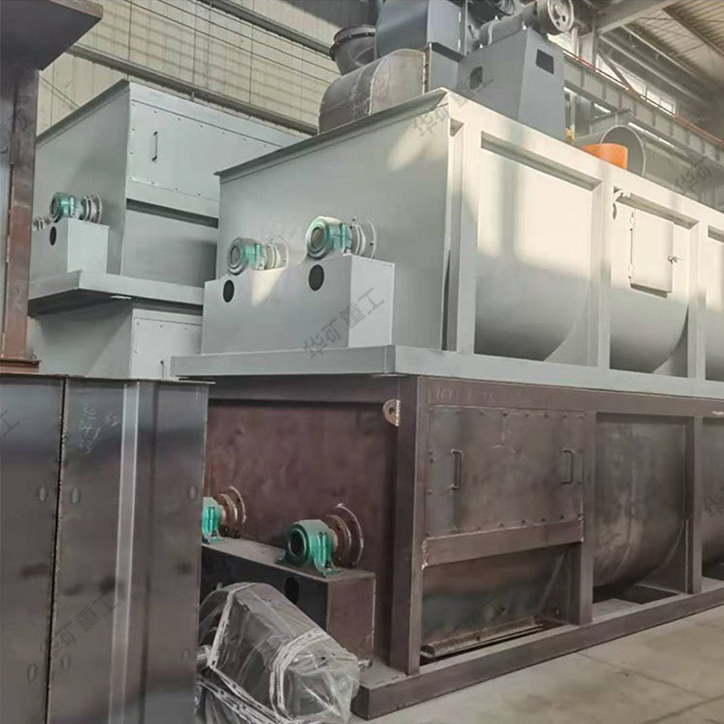 本機主要是采用由回轉(zhuǎn)運動代替攪拌的化灰方法。化灰機內(nèi)筒后部開有篩孔,石灰塊同水在內(nèi)筒接觸消化,石灰乳穿過篩孔折流向加料口方向自下部排出口流出,未能消化的過燒及生燒石灰由外筒體尾部的撈渣裝置排出筒外。
