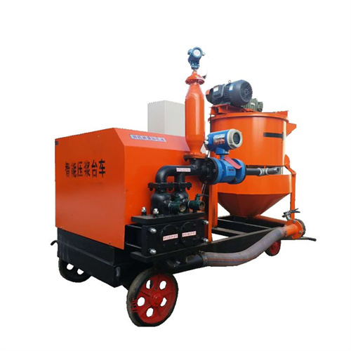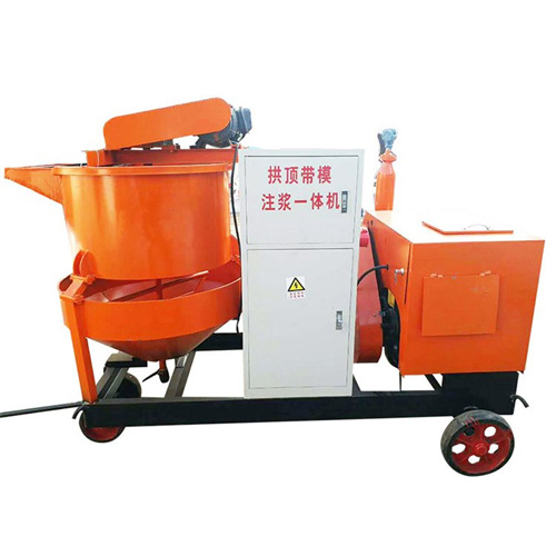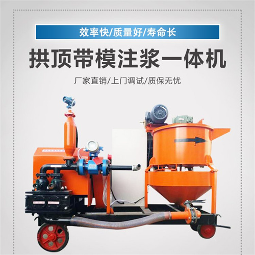 拱頂帶模注漿一體機(jī)帶模注漿工藝原理在襯砌臺(tái)車拱頂設(shè)置注漿孔、排氣孔及觀察口,并在襯砌臺(tái)車上安裝注漿管、排氣管等。安裝注漿管并固定,在開口處安裝法蘭,在法蘭內(nèi)安裝注漿管并固定。在襯砌混凝土澆筑時(shí),該注漿管的作用就是觀察口。帶模注漿是在襯砌混凝土澆筑結(jié)束后及時(shí)注漿,由于有臺(tái)車保護(hù)可采用較高的壓力(高達(dá)1.0MPa)進(jìn)行注漿,注漿材料與襯砌混凝土結(jié)合成整體 工作原理:電機(jī)通過減速機(jī)驅(qū)動(dòng)具有特定軌跡的工作凸輪,推動(dòng)前進(jìn),回程由彈簧使復(fù)位,形成的往返行程。在返程時(shí)工作缸和閥室相對(duì)形成真空,上閥球下落,上閥室關(guān)閉,下閥球升起,下閥室打開,將砂漿由料斗經(jīng)吸漿管下閥室和工作缸。當(dāng)前進(jìn)時(shí)工作缸和閥室內(nèi)壓力上升,下閥球下落,下閥室關(guān)閉,上閥球升起,上閥室打開,缸將工作缸及閥室內(nèi)的砂漿由上閥室泵出,如此循環(huán)反復(fù)。