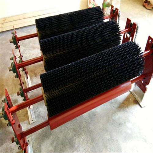 毛刷清掃器,毛刷借滾筒緊貼輸送帶的載荷面清掃卸載后粘結(jié)在輸送帶上的煤粉。毛刷清掃器在輸送機(jī)上有著不可忽視的作用。在運(yùn)行中,如果人為的清除機(jī)尾滾筒附著物,往往容易發(fā)生嚴(yán)重人身傷亡事故。而清掃器有及時(shí)、方便地、快速的清除滾筒附著物的特點(diǎn)。