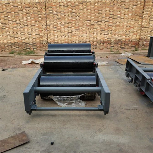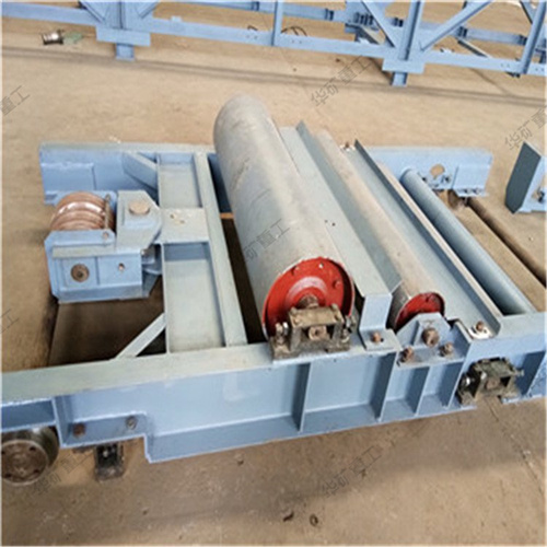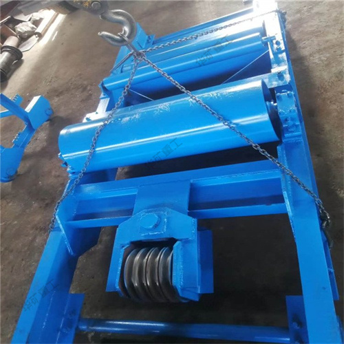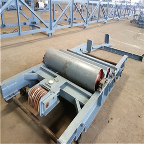 皮帶輸送機拉緊游動小車由車架、換向滾筒、滑輪組、車輪等組成,滑輪組裝在車身后都與另一滑輪組相適應(yīng),其位置可受力時車身不被抬起,這樣對保持車身穩(wěn)定,防止換向滾筒上的膠帶跑偏效果較好,車身下部還裝著止爬鉤,用以防止車輪脫軌掉道。游動小車向左側(cè)移動時,膠帶放出,機身伸長,游動小車向右側(cè)移動時,膠帶儲存,機身縮短,通過鋼絲繩拉緊游動小車可使膠帶得到適當(dāng)?shù)膹埦o度。