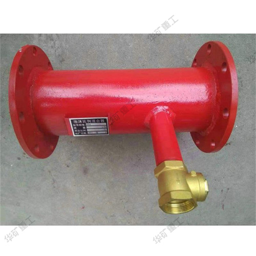泡沫比例混合器主要由泡沫儲罐、橡膠膠囊、壓力式比例混合器、安全閥、進 水管路、出液管路、排水閥、排液閥、排氣閥等組成。當消防水泵壓力水源經(jīng)供水管道進入 比例混合器減壓孔板時,在孔板的前后會形成壓差。