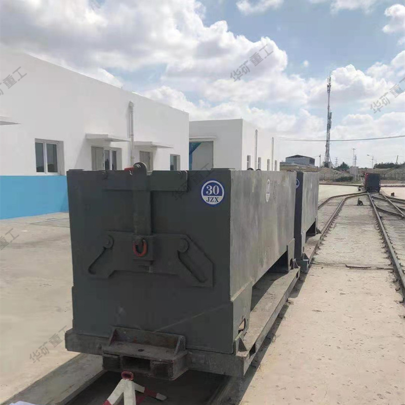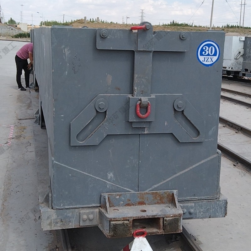 1.自卸式集裝箱主要用于井下物資、貨物的運輸。運輸時,起吊鉤在運輸起吊環(huán)上,兩個半邊的箱體底部由于擠在一起,加上箱體和貨物的自身重力,這時底部是越拉越緊,整個箱體是閉合狀態(tài),此時可以視作一個密閉的箱體,進行物資或貨物的運輸。