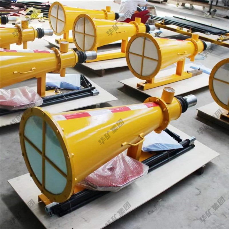 煤礦自動隔爆裝置是一款經濟實用、安全效能突出的新型的隔抑爆產品,與隔爆水袋相比,其安全效能更加穩(wěn)定。 煤礦井下自動隔爆裝置安裝在有瓦斯、煤塵爆炸危險的巷道中,當發(fā)生瓦斯或煤塵爆炸時能自動噴出滅火物質,及時淬熄在其保護范圍內的爆炸火焰,避免火焰繼續(xù)蔓延引發(fā)危害更大的二次爆炸,將瓦斯爆炸造成的危害降低到。煤礦井下自動隔爆裝置采用錨桿連接的方式固定在巷道頂板上方,并根據巷道情況選擇裝置的布置方式、安裝數量等。沖擊波接收器面向爆炸產生的沖擊波和火焰的蔓延方向。沖擊波先于火焰到達沖擊波接收器,并使觸發(fā)裝置動作,隔爆介質噴出,形成高效能霧狀隔爆區(qū)域,該霧狀隔爆介質可懸浮足夠時間以等待火焰到來并使之熄滅,起到阻止爆炸蔓延的作用。