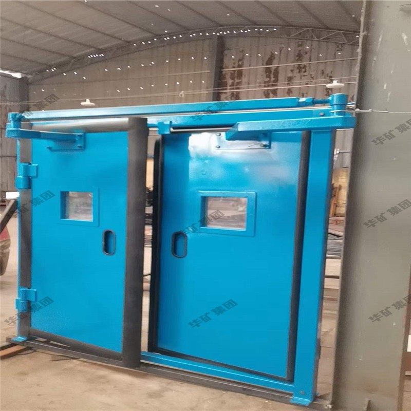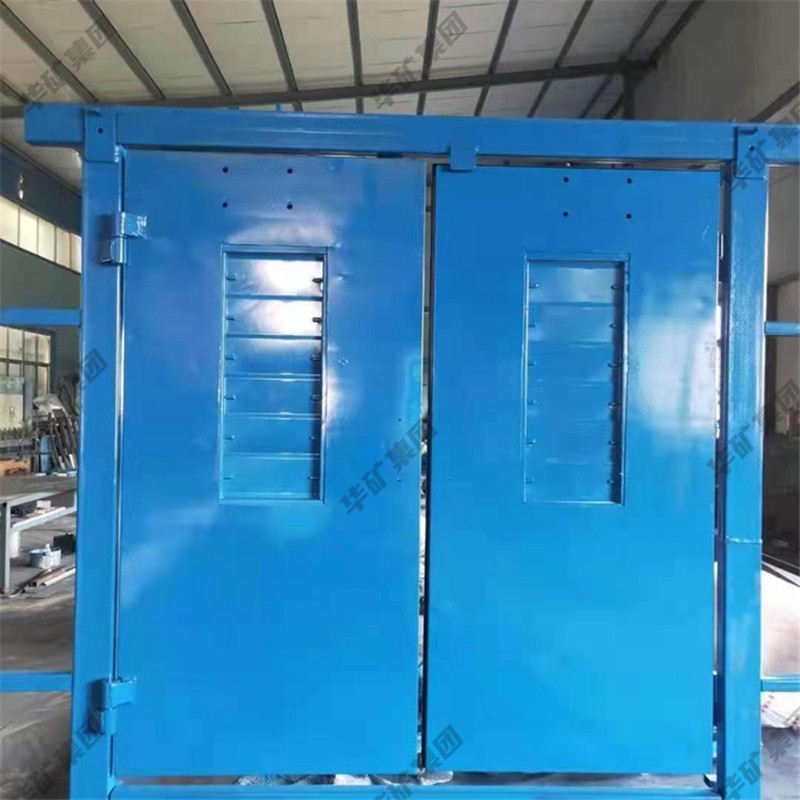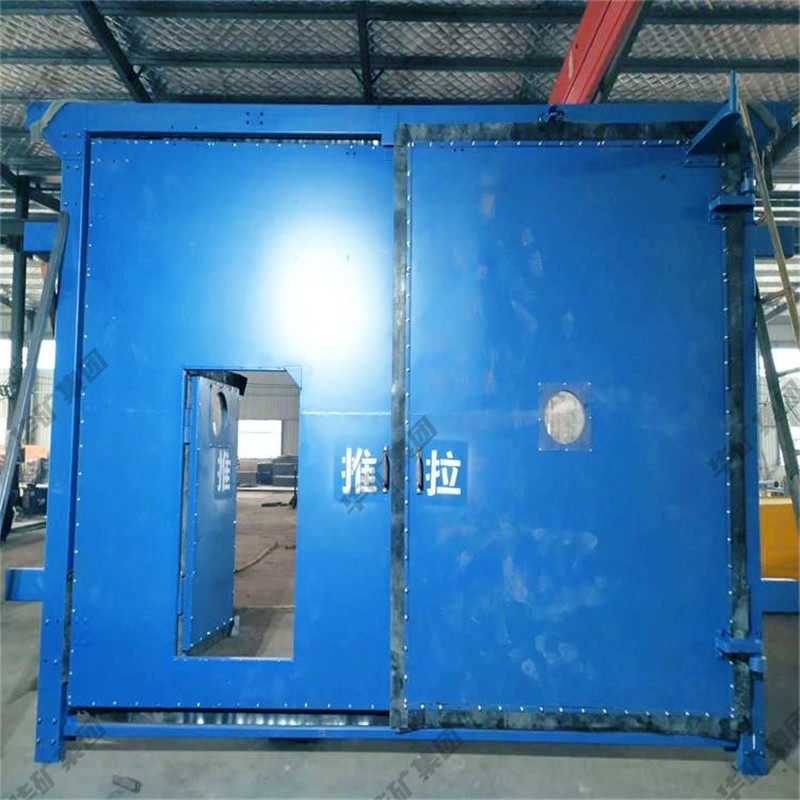 礦用無壓風(fēng)門主要用于礦山井下進(jìn)回風(fēng)巷和主要進(jìn)回風(fēng)巷之間每個(gè)聯(lián)絡(luò)巷中。雙扇無壓風(fēng)門運(yùn)用聯(lián)桿平衡機(jī)構(gòu),開啟力小,不需再設(shè)反向風(fēng)門。