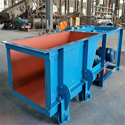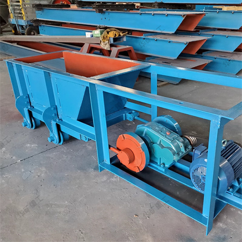 槽式給料機(jī)又稱往復(fù)式或擺動(dòng)式給料機(jī),它是貯礦槽排料應(yīng)用較早的一種給料設(shè)備。型式較多,其結(jié)構(gòu)的共同點(diǎn)是均裝有可控制料層高度的調(diào)節(jié)閘板;在輸料槽下部為一前后移動(dòng)的給料板。其不同點(diǎn)是給料板角度不一樣,一般為沿卸料方向向下傾斜5度以及更大的傾角(小于物料的靜堆積角)和角度為零的水平型等。給料板的動(dòng)作有前后往復(fù)移動(dòng)式,抖動(dòng)式以及擺動(dòng)式等。傳動(dòng)機(jī)構(gòu)均為曲柄回轉(zhuǎn)式。