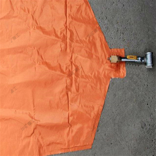 本裝置為隔絕式防護(hù)裝置,當(dāng)煤礦井下出現(xiàn)煤與瓦斯凸起預(yù)兆或凸起時(shí),避災(zāi)人員應(yīng)登時(shí)跑至壓風(fēng)自救裝置處,解開披肩防護(hù)袋,翻開球閥開工,迅速鉆進(jìn)披肩防護(hù)袋,其壓力達(dá)0.09Mpa左右,對袋外空氣形成正壓,而袋外有害空氣壓力低,不行進(jìn)入防護(hù)袋,使避災(zāi)人員不致受到損害。披肩防護(hù)待材料具有不漏氣、阻燃和抗靜電的特點(diǎn)。