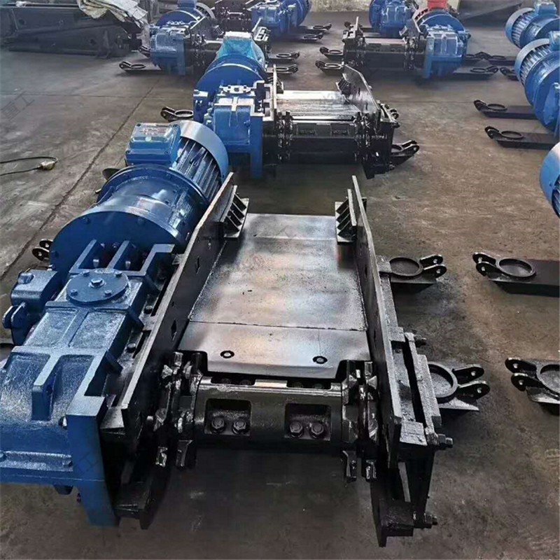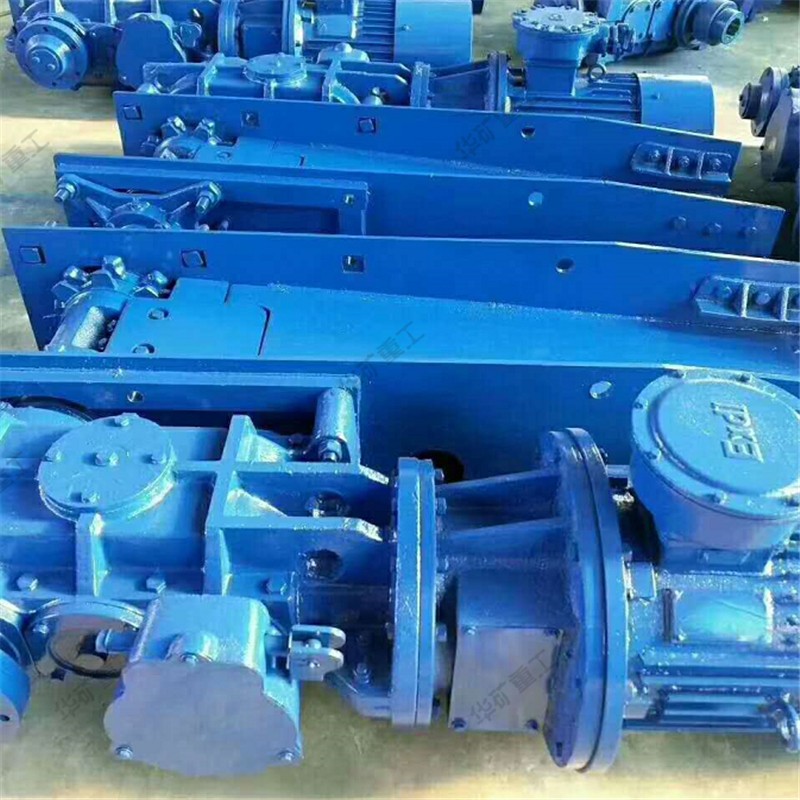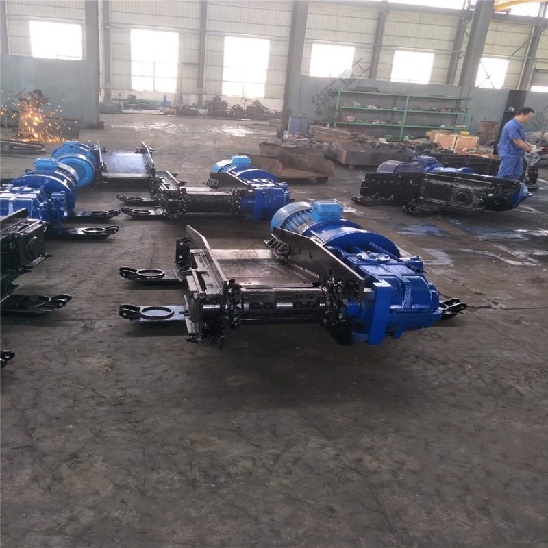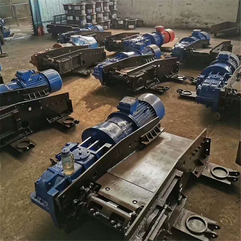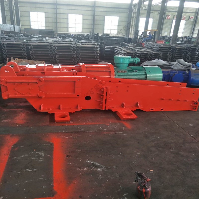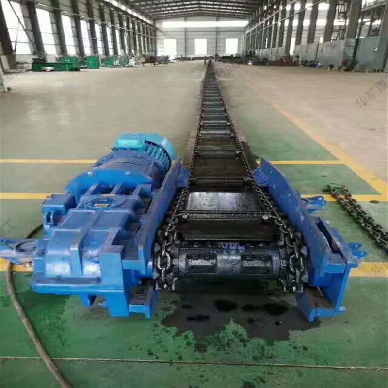 用刮板鏈牽引,在槽內運送散料的輸送機叫刮板輸送機。它由機頭、中間部和機尾部等三個部分組成。此外,還有供推移輸送機用的液壓千斤頂裝置和緊鏈時用的緊鏈器等附屬部件。機頭部由機頭架、電動機、液力偶合器、減速器及鏈輪等件組成。中部由過渡槽、中部槽、鏈條和刮板等件組成。機尾部是供刮板鏈返回的裝置。