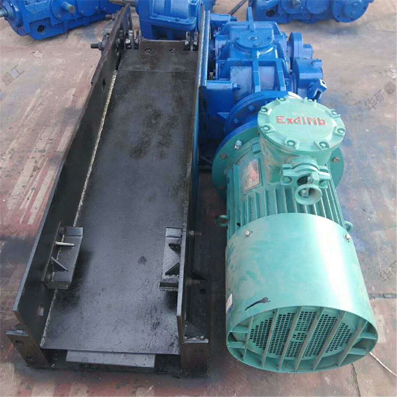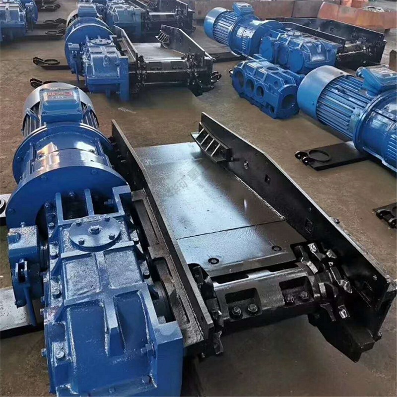 將敞開的溜槽,作為煤炭、矸石或物料等的承受件,將刮板固定在鏈條上(組成刮板鏈),作為牽引構件。當機頭傳動部啟動后,帶動機頭軸上的鏈輪旋轉,使刮板鏈循環(huán)運行帶動物料沿著溜槽移動,直至到機頭部卸載。刮板鏈繞過鏈輪作無級閉合循環(huán)運行,完成物料的輸送。