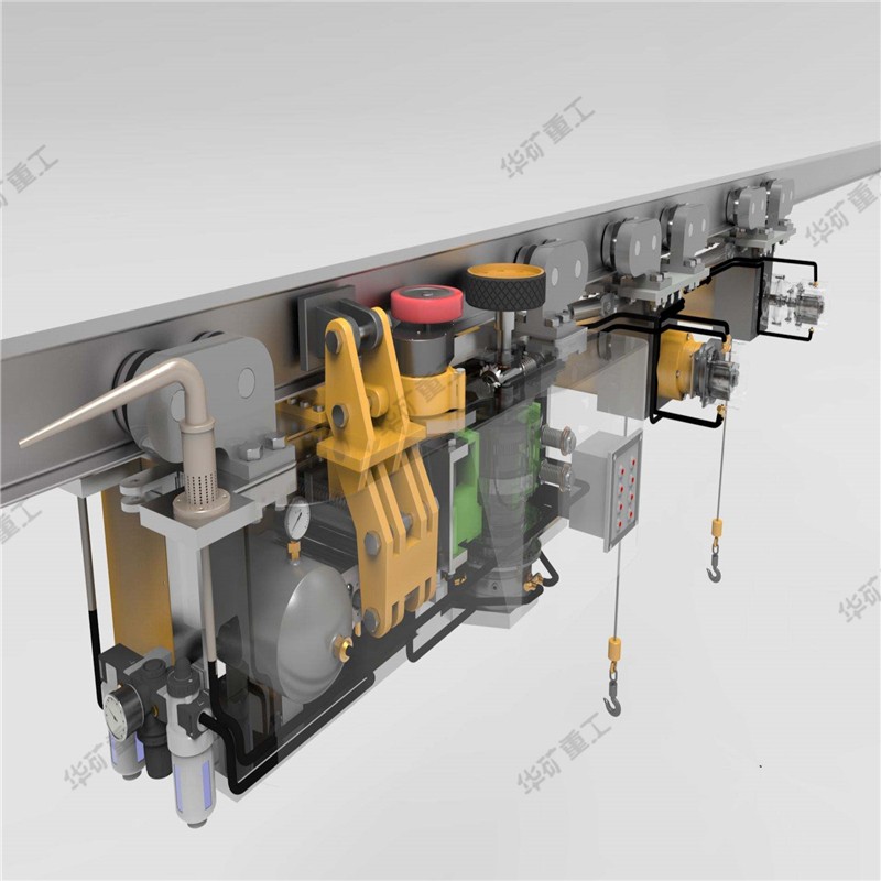 三是可完成從采區(qū)車場直至工作面不經(jīng)轉(zhuǎn)載的輔助運輸,可用于把主要運輸大巷和采區(qū)巷道連在一起的輔助運輸作業(yè)。本機(jī)驅(qū)動單軌吊運行靈活,一臺可多岔道多支線直達(dá)運輸,運行阻力小,效率高,用人少,能直接進(jìn)入工作面;