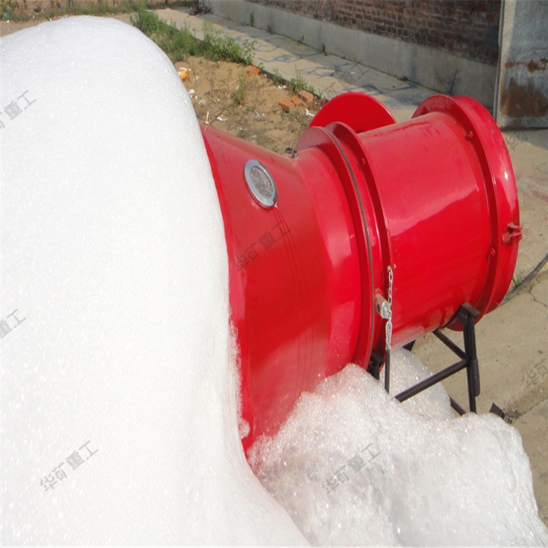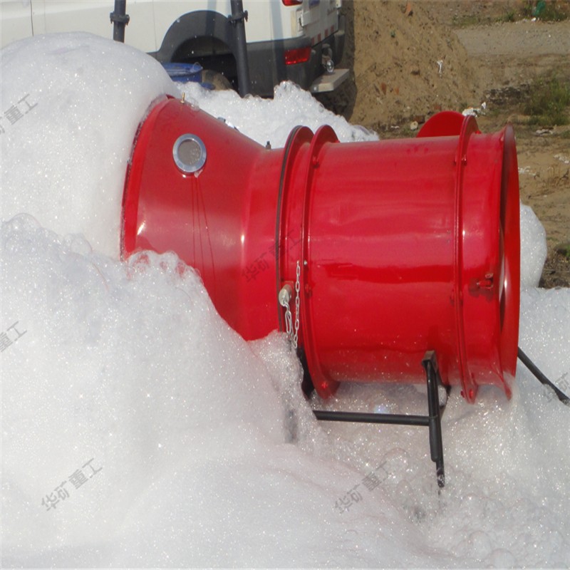 高倍數(shù)空氣泡沫具有滅火速度快、水漬損失小、成本低和無毒等優(yōu)點(diǎn)。實踐說明,高倍數(shù)泡沫滅火適用于撲滅煤礦井下巷道及地面,地下有限建筑空間。如煤炭、木材、油類火災(zāi)。由于驅(qū)動風(fēng)壓高,可以在巷道中遠(yuǎn)距離火區(qū)的安全地點(diǎn)操作。高倍數(shù)泡沫能迅速覆蓋火源,切斷火場空氣的來源,隔斷輻射熱、熱對流、熱傳導(dǎo)的作用。高倍數(shù)泡沫在燃燒區(qū)汽化而吸收大量的汽化熱。能起隔熱、降溫作用,同時放出大量的水蒸氣,沖淡燃燒區(qū)含氧量,起著窒息的作用。