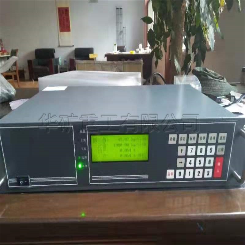 電子皮帶秤稱重橋架安裝于輸送機架上,當物料經過時,計量托輥檢測到皮帶機上的物料重量通過杠桿作用于稱重傳感器,產生一個正比于皮帶載荷的電壓信號。速度傳感器直接連在大直徑測速滾筒上,提供一系列脈沖,每個脈沖表示一個皮帶運動單元,脈沖的頻率正比于皮帶速度。稱重儀表從稱重傳感器和速度傳感器接收信號,通過積分運算得出一個瞬時流量值和累積重量值,并分別顯示出來。