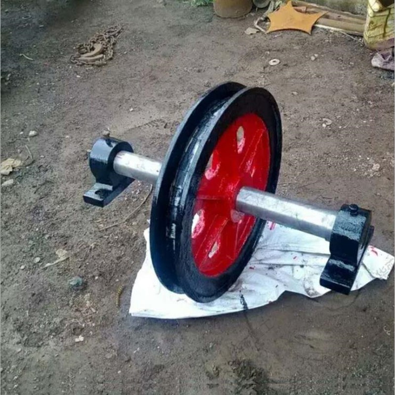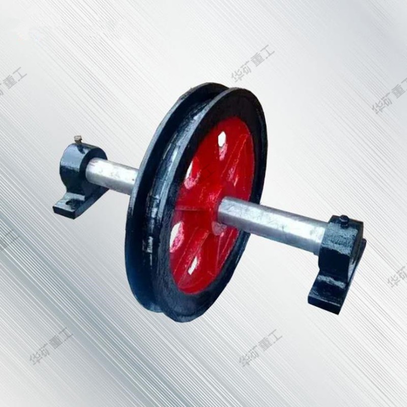 天輪安裝在井架上,作支撐,供礦井提升時支拖提升機卷筒到提升容器之間,引導鋼絲繩轉向之用。繩槽帶塑襯或膠塊,增加鋼絲繩的使用壽命。