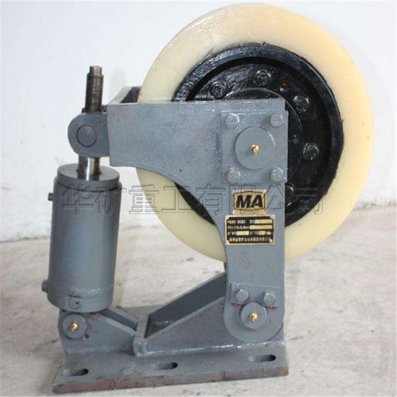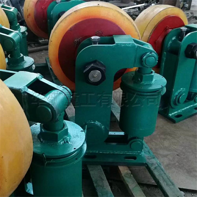 L系列滾輪罐耳用于礦山提升容器的導(dǎo)向緩沖,本產(chǎn)品采用先進(jìn)的密封技術(shù),適應(yīng)淋水、煤塵等惡劣環(huán)境。輪頭安裝采用三鎖緊結(jié)構(gòu),避免掉輪頭事故的發(fā)生。滾輪采用四氫呋喃-環(huán)氧丙烷共聚醚型聚氨酯澆注,具有高彈性、耐撕裂、抗水性、抗油性的優(yōu)點(diǎn)。滾輪磨損補(bǔ)償調(diào)節(jié)采用左、右旋螺桿,調(diào)節(jié)迅速便捷。機(jī)座、擺架采用優(yōu)質(zhì)鋼板焊接成型,體積小、重量輕,安裝輕便。滾輪罐耳主要由輪軸、支架、緩沖裝置、底座等組成。