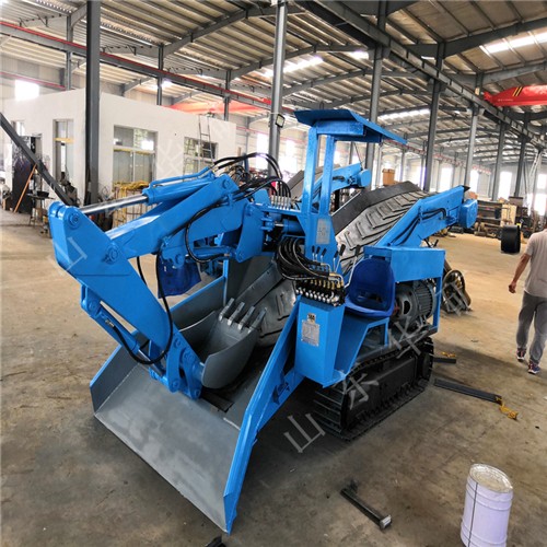 采用底盤分體設(shè)計,通過力強,可以靈活的通過巷道“小支脈”。輸送大架采用分體設(shè)計,對于豎井礦山下井安裝極為方便。皮帶采用pvg高拉力阻燃帶使用壽命長,可保證掘進巷道距離為360m以上。 挖掘式裝載機扒渣機具由轉(zhuǎn)彎靈活,操作簡單,掘進巷道不用調(diào)頭,效率高
