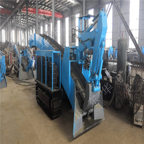 采用底盤分體設計,通過力強,可以靈活的通過巷道“小支脈”。輸送大架采用分體設計,對于豎井礦山下井安裝極為方便。皮帶采用pvg高拉力阻燃帶使用壽命長,可保證掘進巷道距離為360m以上。 挖掘式裝載機扒渣機具由轉(zhuǎn)彎靈活,操作簡單,掘進巷道不用調(diào)頭,效率高